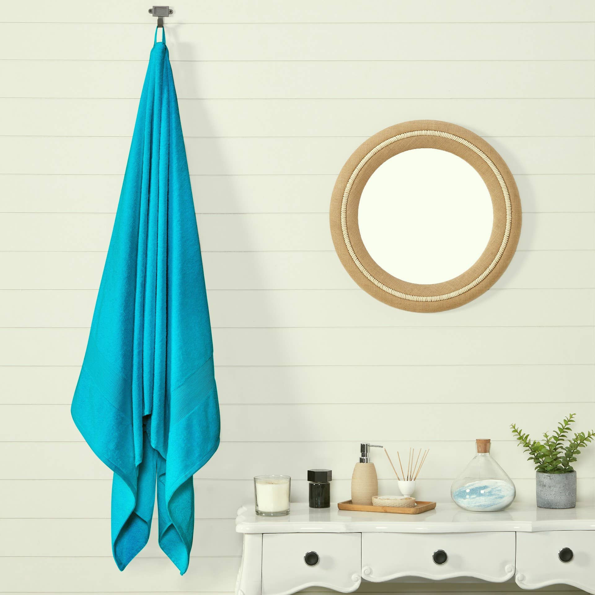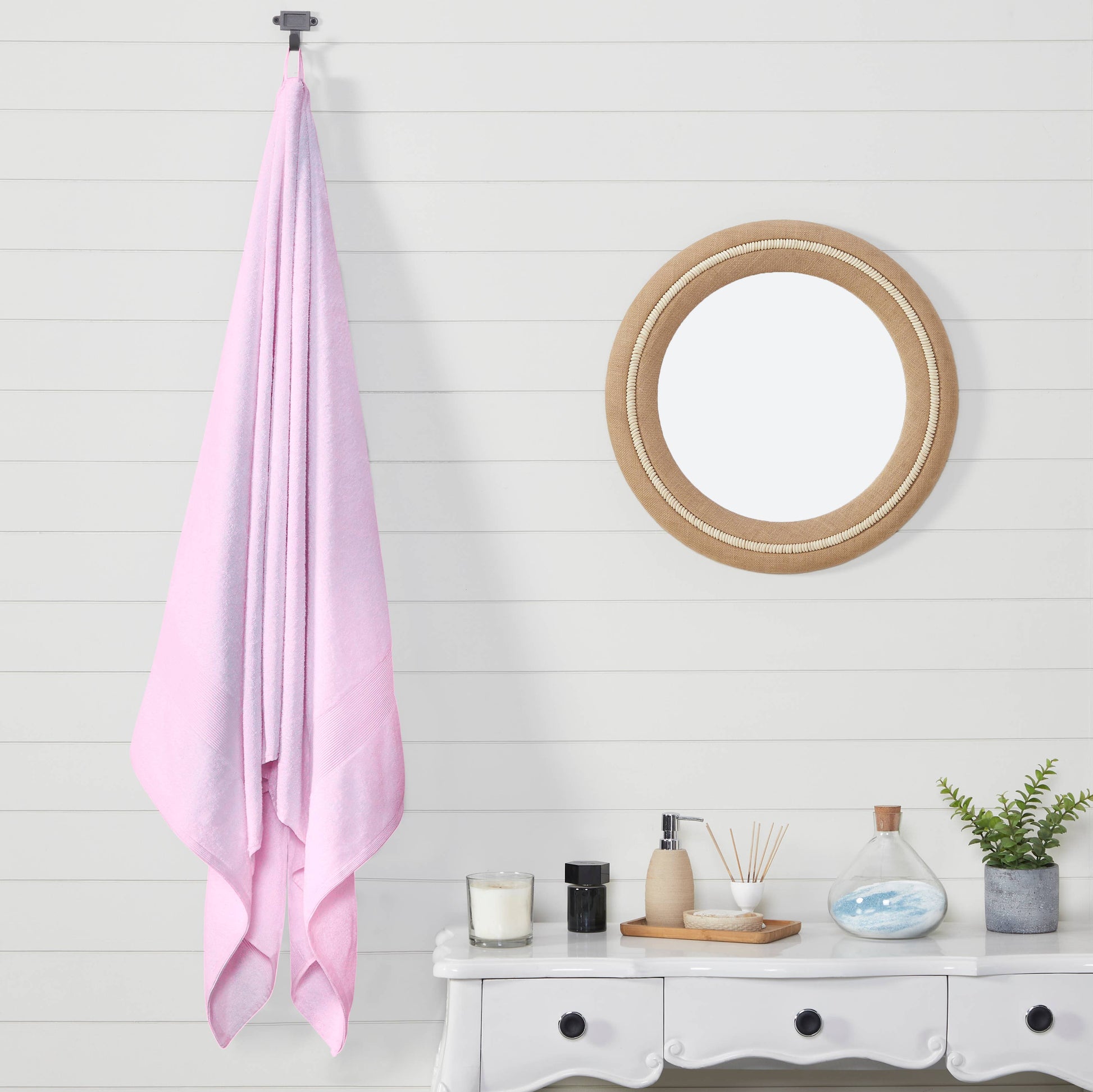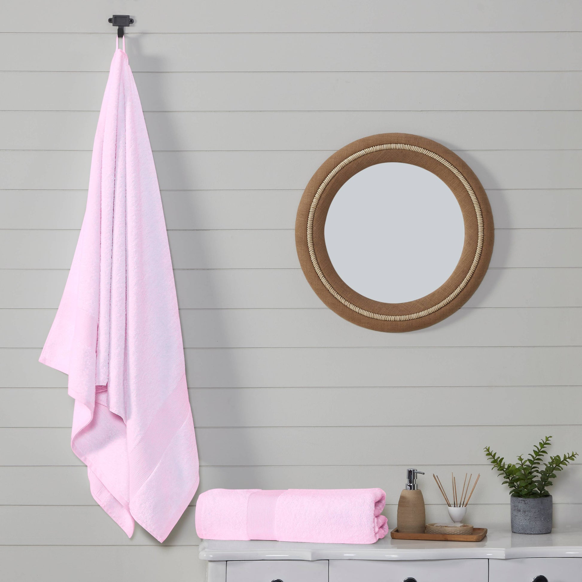 100% cotton bath sheets are made from natural cotton grown in India which gives them a soft and plush feel. These towels are highly absorbent, making them the perfect choice for drying off after a long relaxing shower. These extra large bath sheets are made of 100% cotton to give them a thick and absorbent feel. These jumbo towels come with a hanging loop so you can easily dry them after coming out of the shower. With reinforced seams, the hanging loop is durable enough to carry the weight of these large absorbent bath sheet.