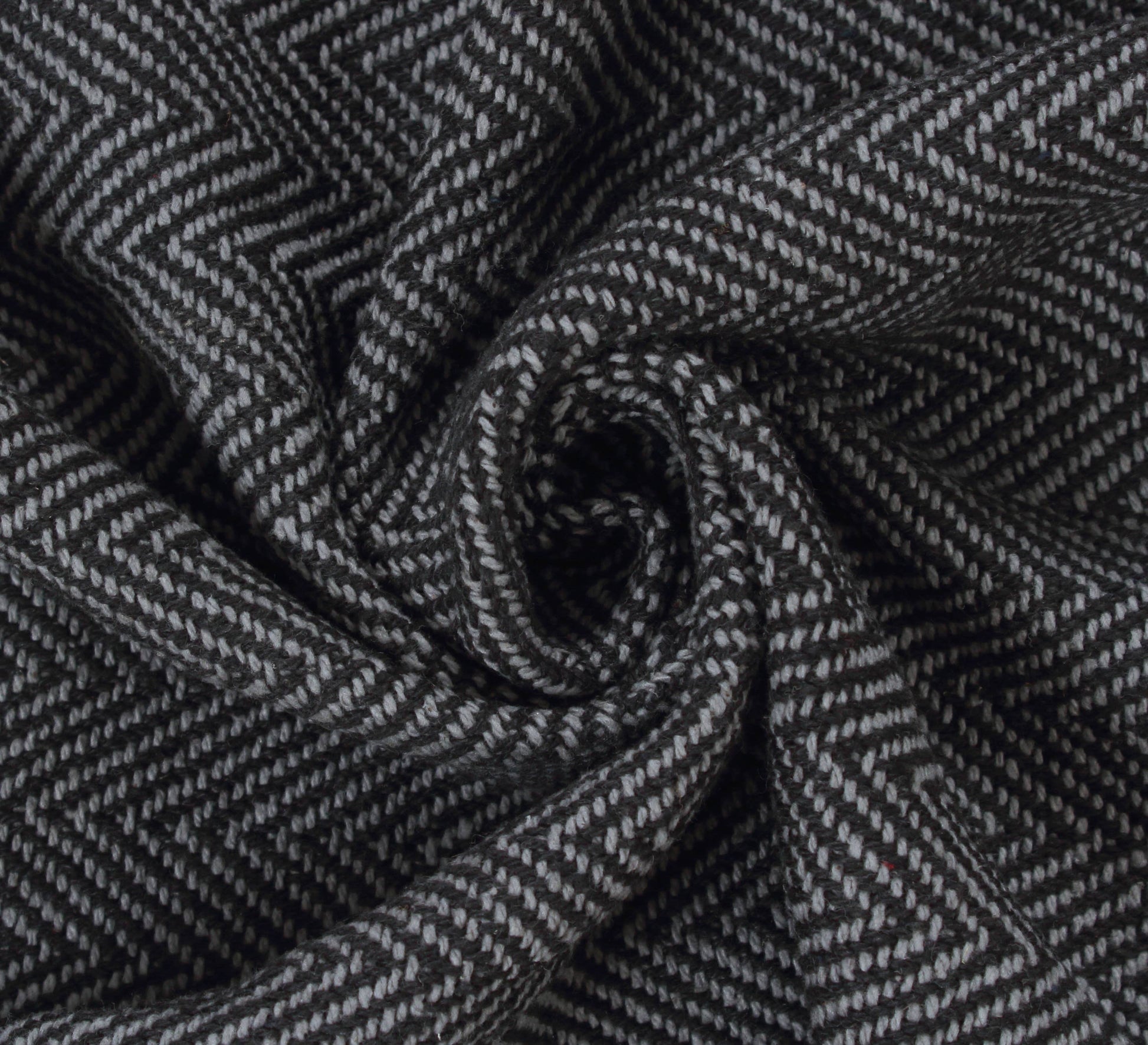 Fabstyles Herringbone Stripe Cotton Throw Blanket Fringes: Black / 50x60