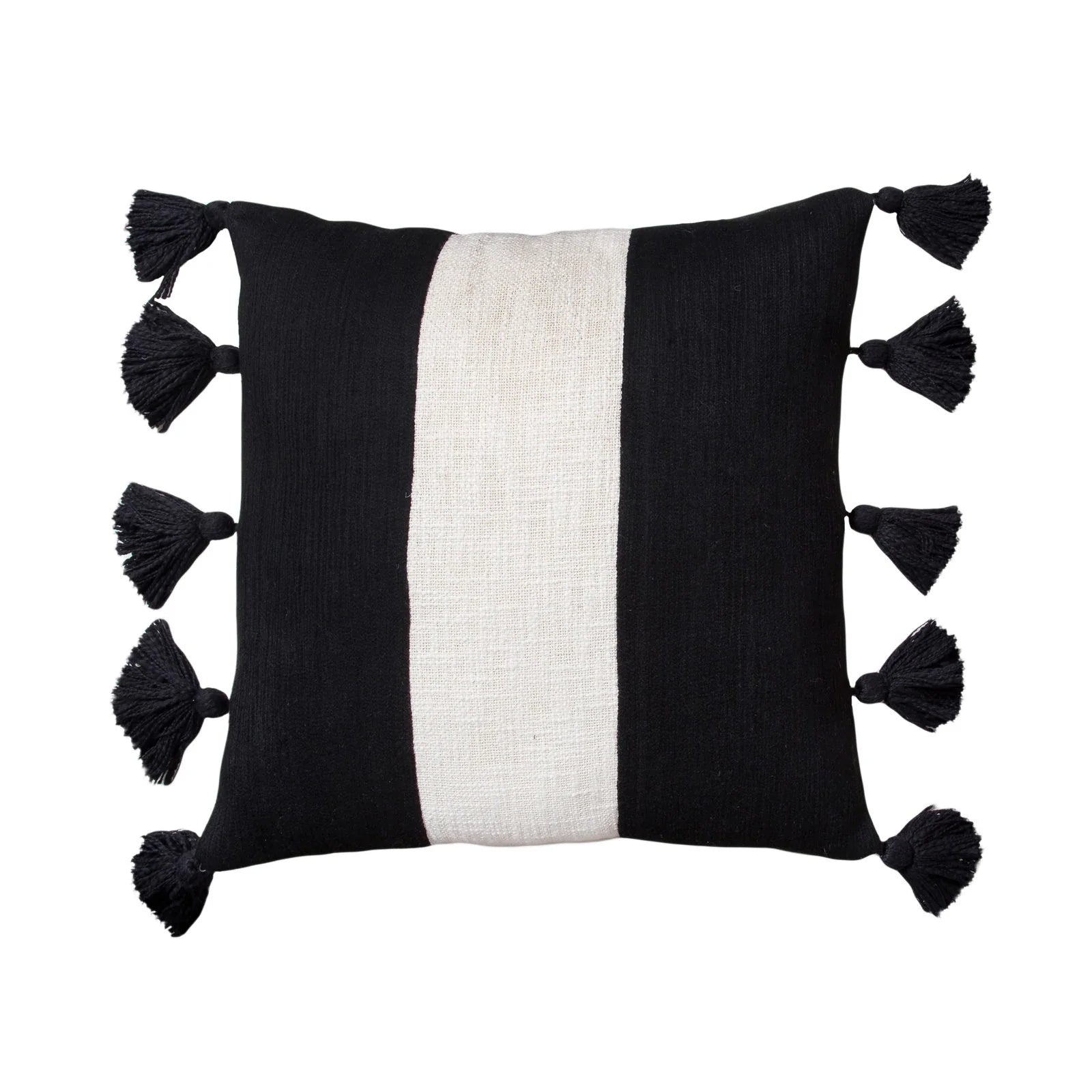 Just say no to boring design. Our Freedom cushions in 100% cream cotton fabric are fun and flirty with tassels, fringe and bold black stripes.