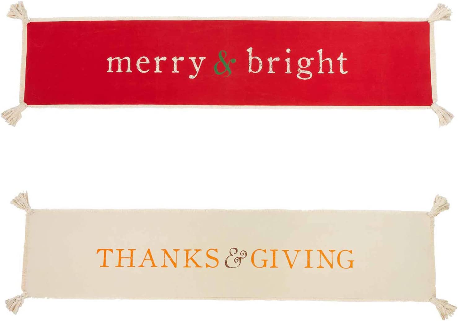 - Reversible washed canvas table runner with corner tassels