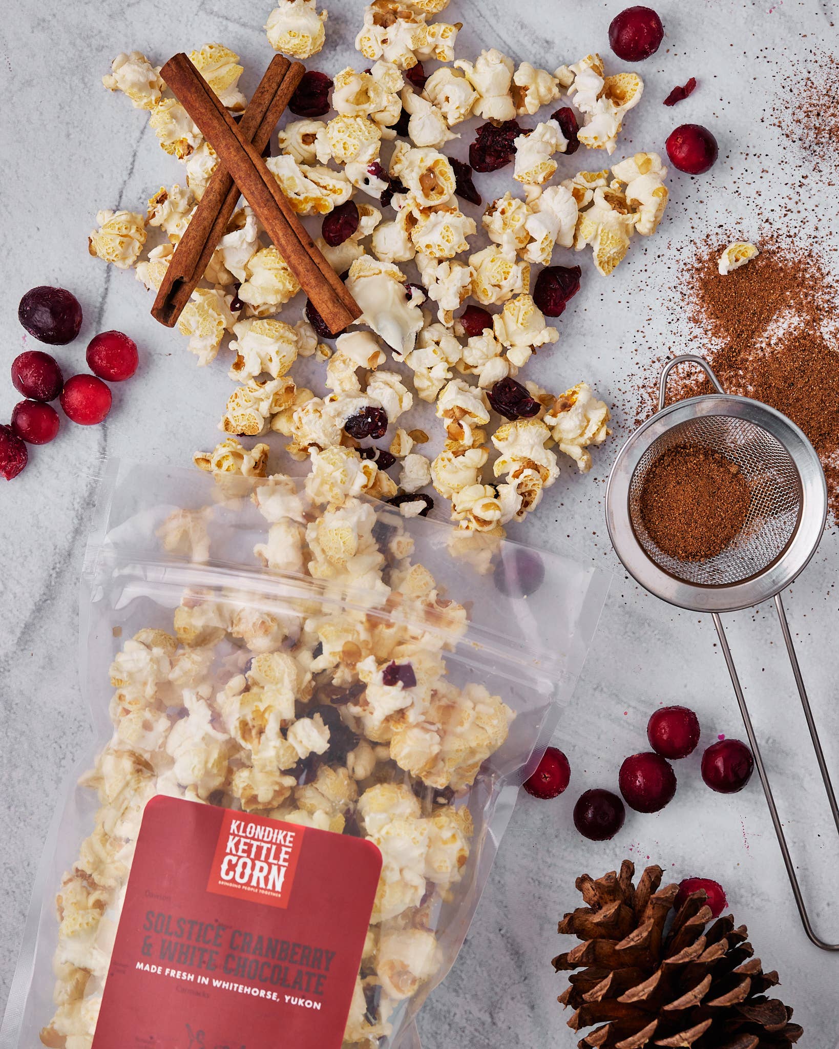Du chocolat blanc velouté parfumé de cannelle et de clou de girofle, accompagné de canneberges du Yukon et une pincée d'anis étoilé, créent une gâterie qui comblera vos envies de sucré.