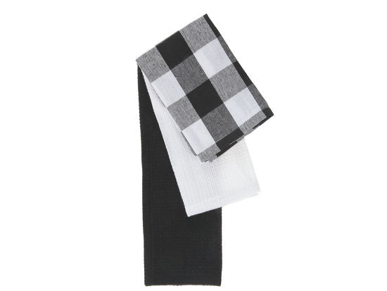 White buffalo plaid, white and black dish towels. 3pk.